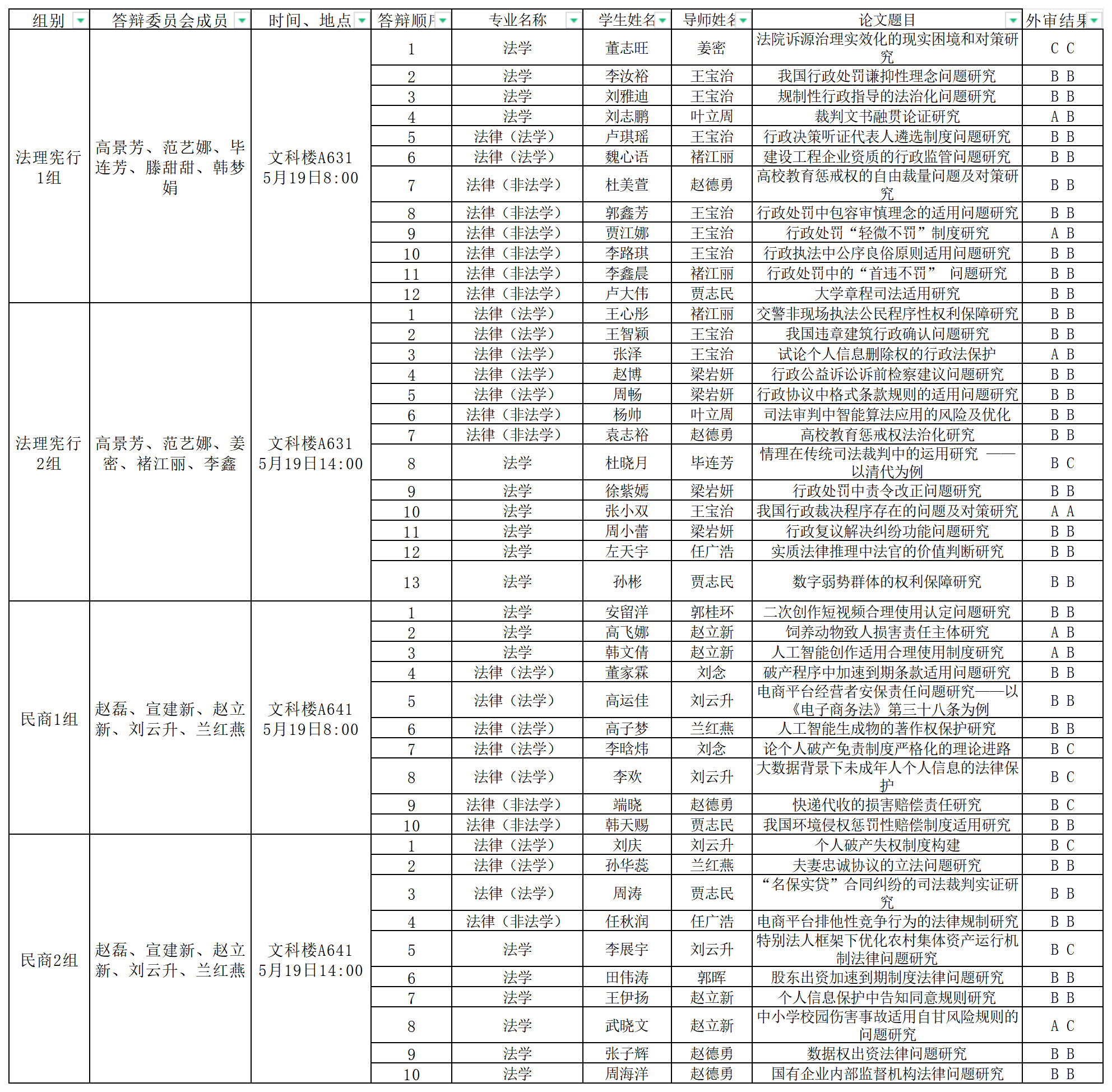 234钱包 2024年法学专业硕士学位论文答辩安排(法理、宪行、民商方向)